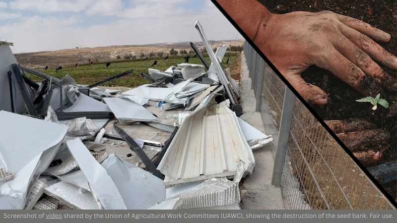 “On July 31, 2025, Israeli forces bulldozed the seed‑multiplication unit of the Union of Agricultural Work Committees (UAWC’s) seed bank in Hebron. Built from the ground up beginning in 2010, the unit had served as the only seed bank in the West Bank, safeguarding over 70 varieties of indigenous heirloom seeds, many of which no longer exist elsewhere in Palestine, according to Fouad Abu Saif, UAWC’s director general.