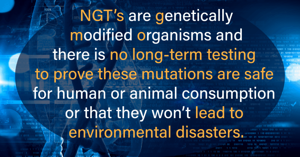 The fact is that these NGTs artificially alter the genetics of living organisms in ways that do not occur naturally. This is entirely new and very different from the way farmers and researchers have used natural breeding and other propagation methods for thousands of years. The result of an NGT is a genetically modified organism – they are GMOs and not natural.
